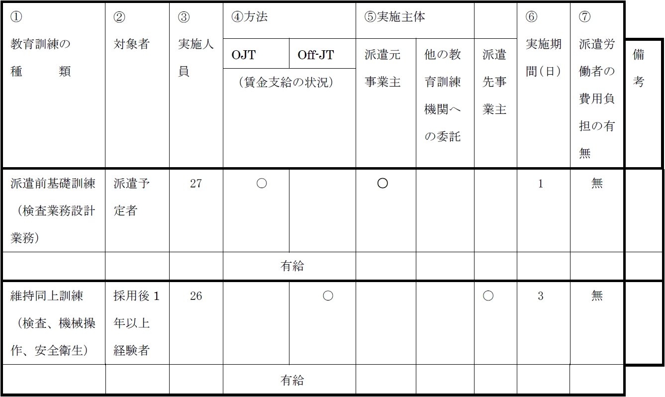 労働派遣法第23条第5項に基づき下記の情報を提供します。
